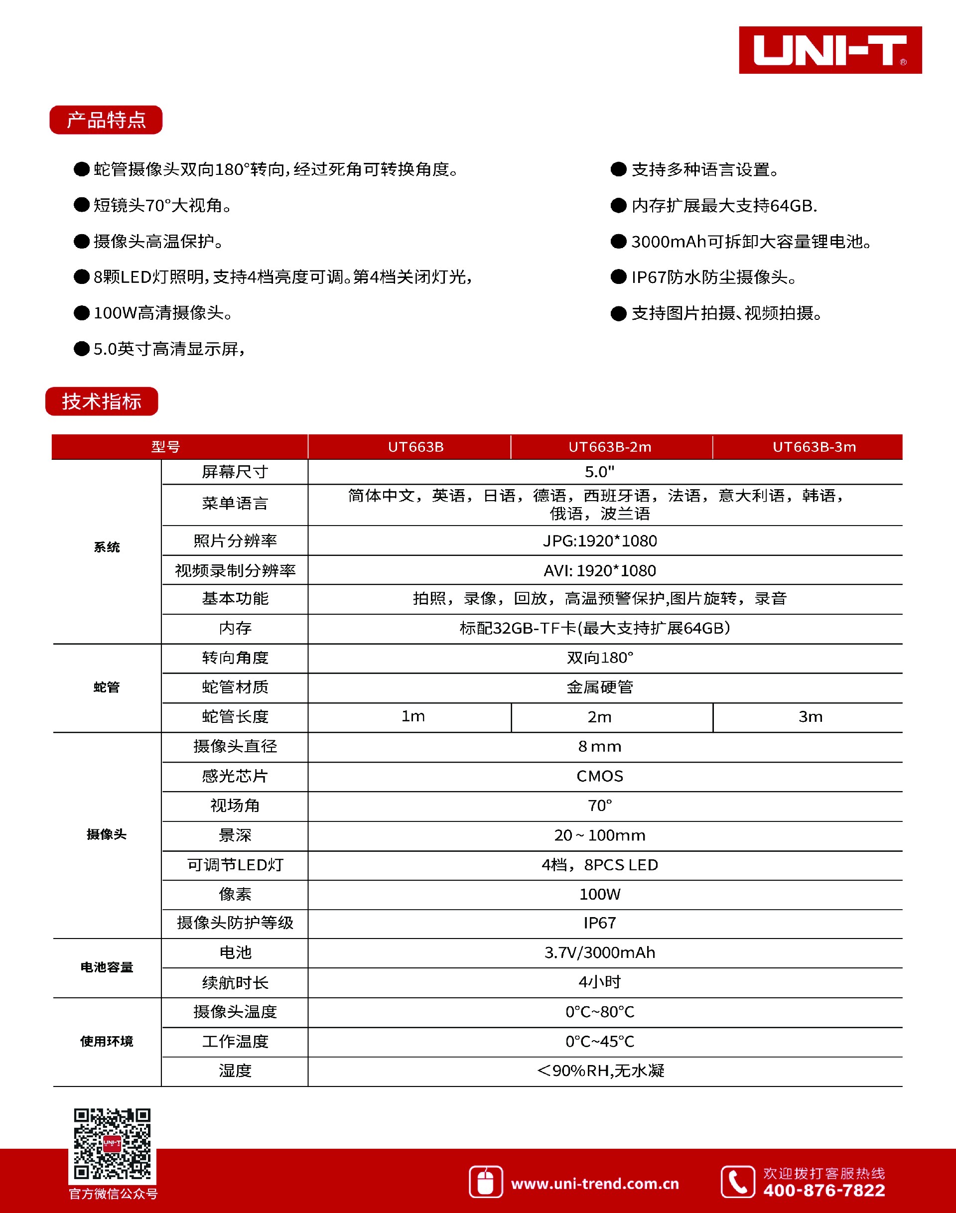 UT663B-3m产品主要特点